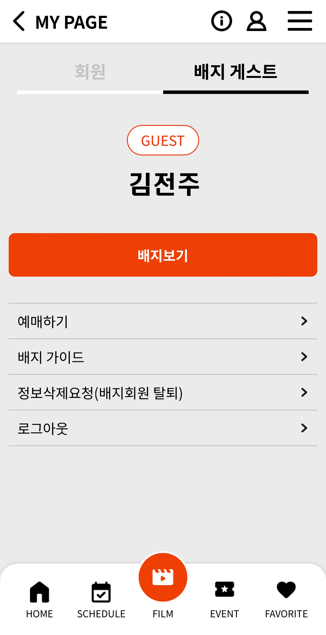 배지 게스트로 로그인해야 합니다. 로그아웃 후 배지 게스트로 로그인해주세요.